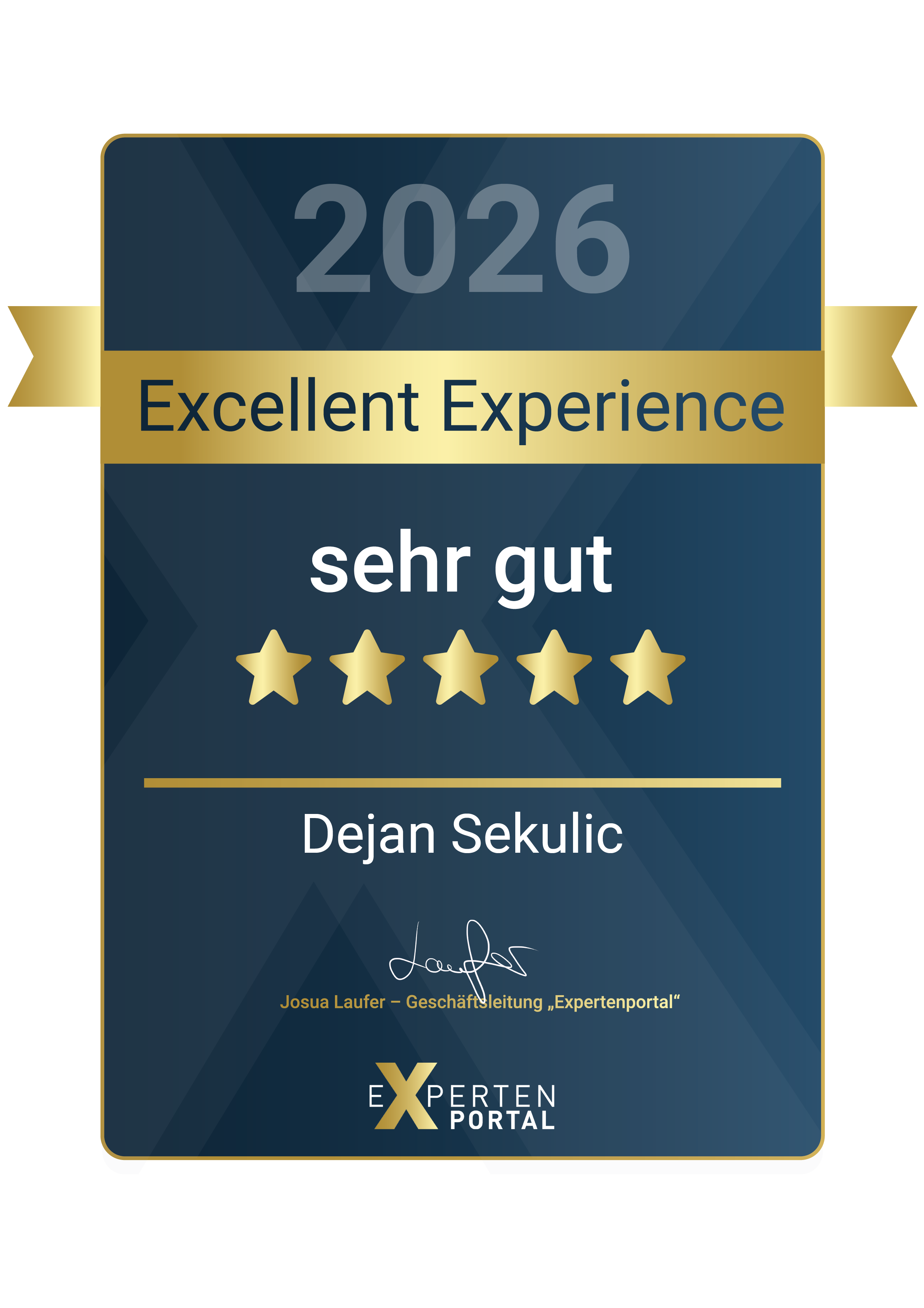 Im Sommer 2020 wurde Dejan Sekulic ganz offiziell für seine Expertise vom ERFOLG Magazin zum TOP Experten und 2024 zu den TOP 100 Coaches und Beratern ausgezeichnet.